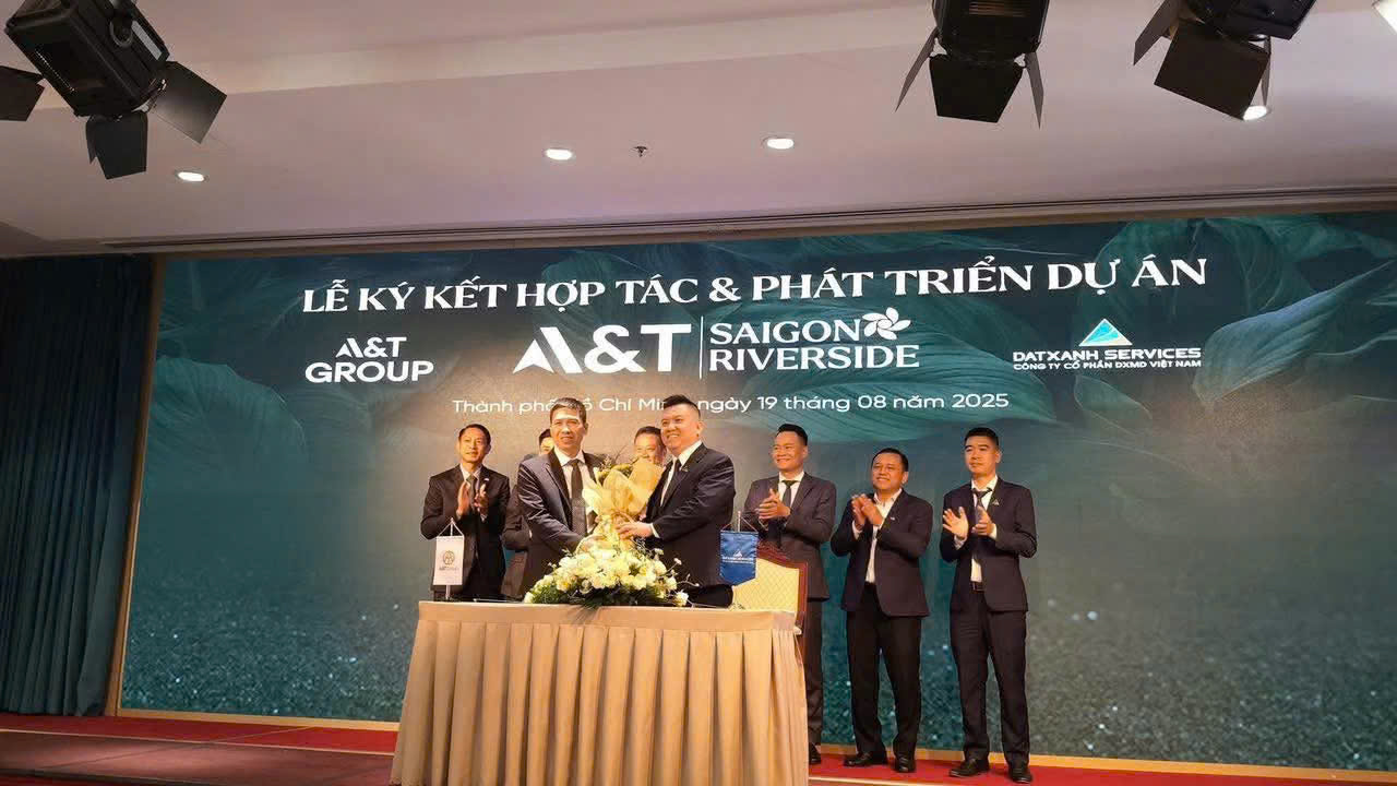 Sáng 19-8-2025, diễn ra Lễ ký kết hợp tác và phát triển dự án A&T Sài Gòn Riverside giữa A&T Group và Đất Xanh Services. Buổi ký kết diễn ra thành công tốt đẹp với sự tham dự của Ban lãnh đạo A&T Group, Đất Xanh Services và DXMD Vietnam.