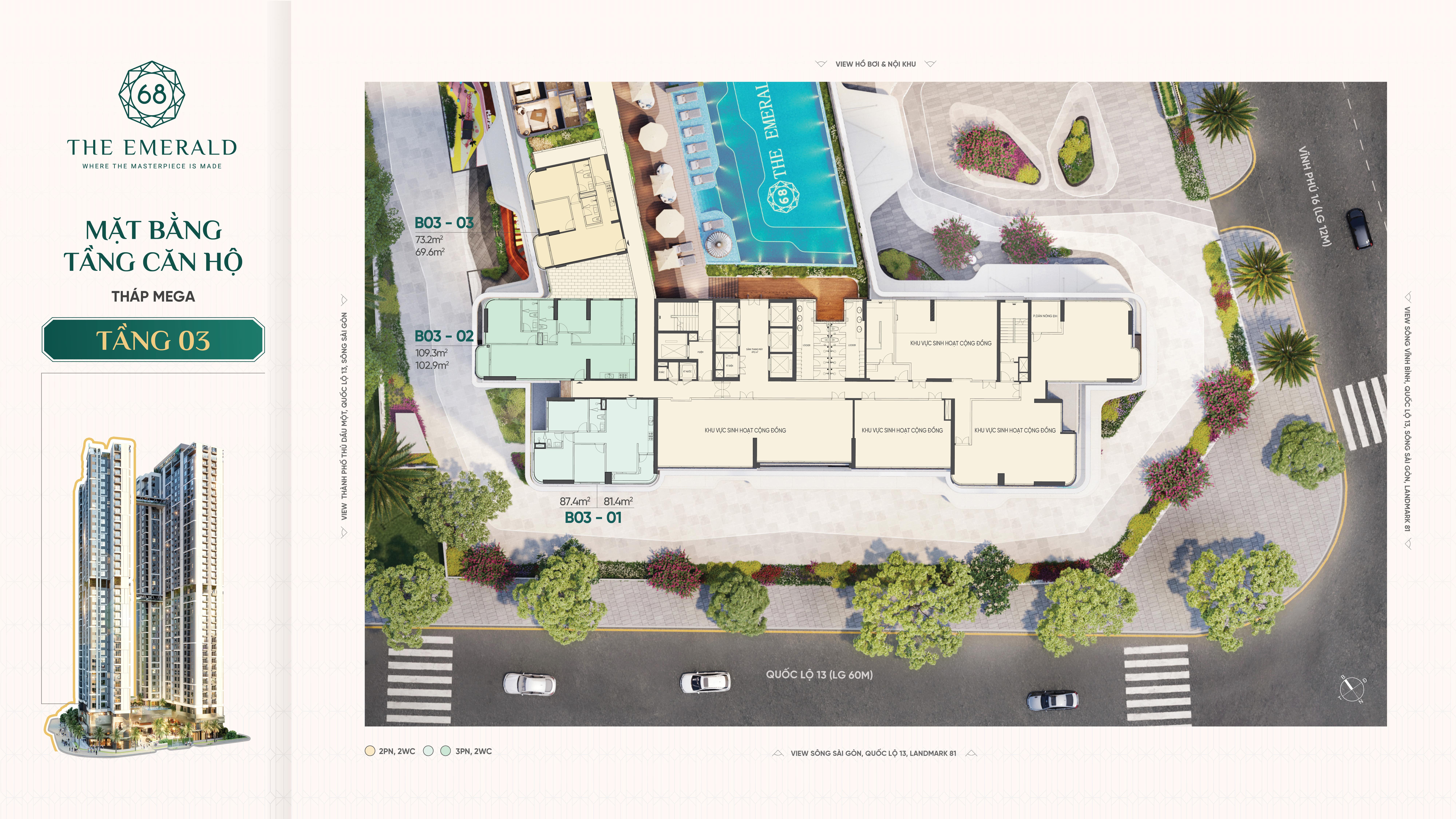 🌻 Tầng 3 tháp Mega chủ yếu dành cho tiện ích và hồ bơi nên chỉ có 3 căn hộ "độc bản"