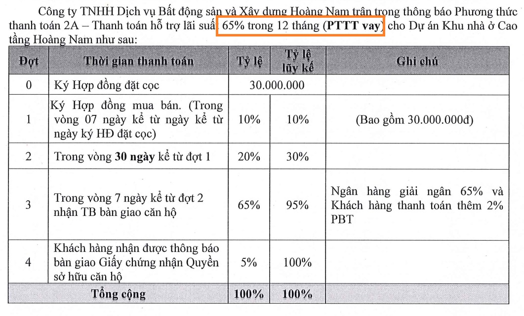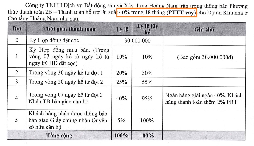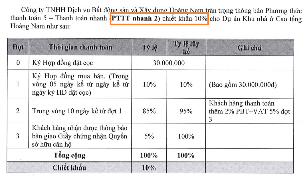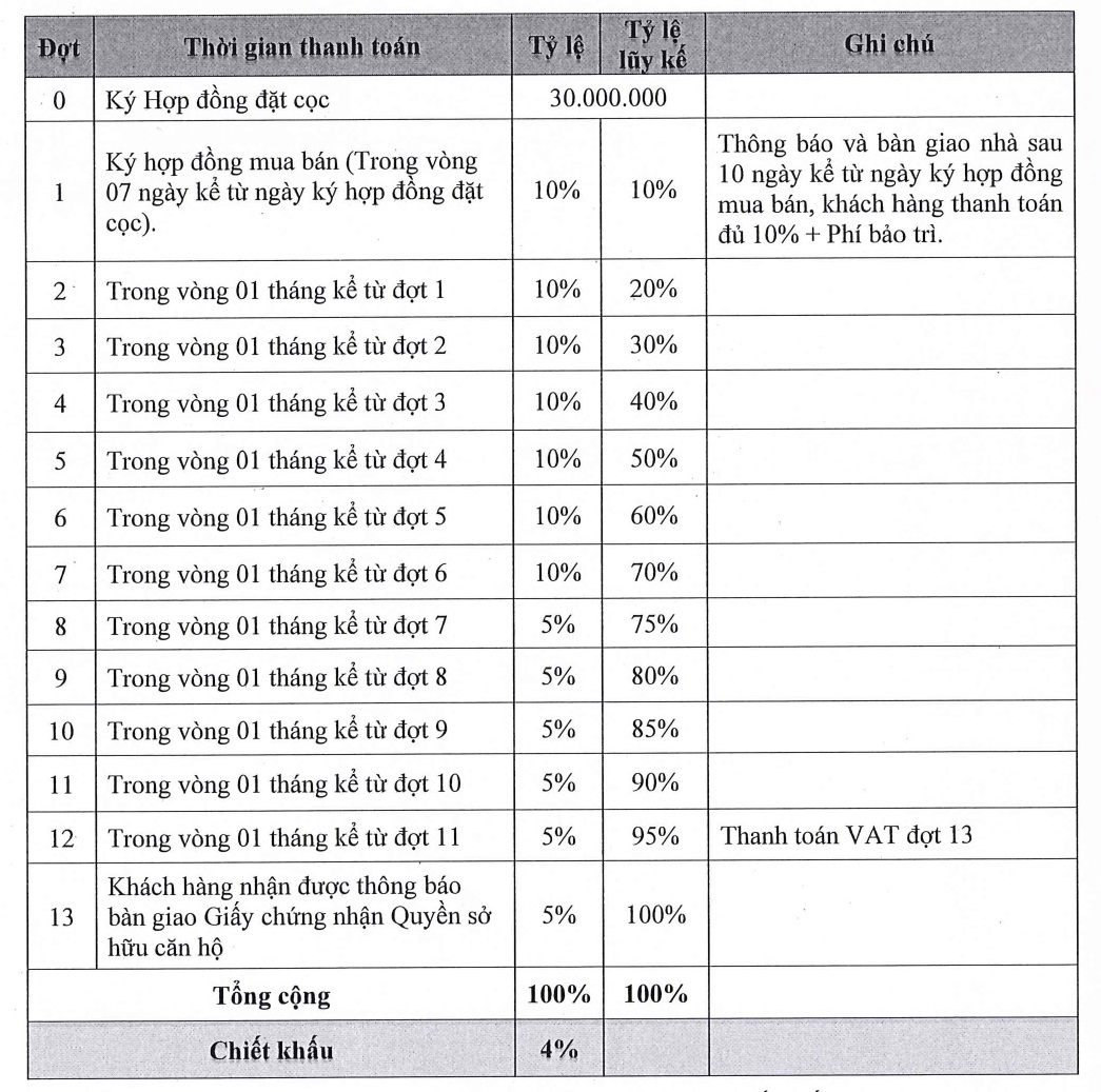 1. PTTT chuẩn thanh toán trong 12 tháng chiết khấu 4%