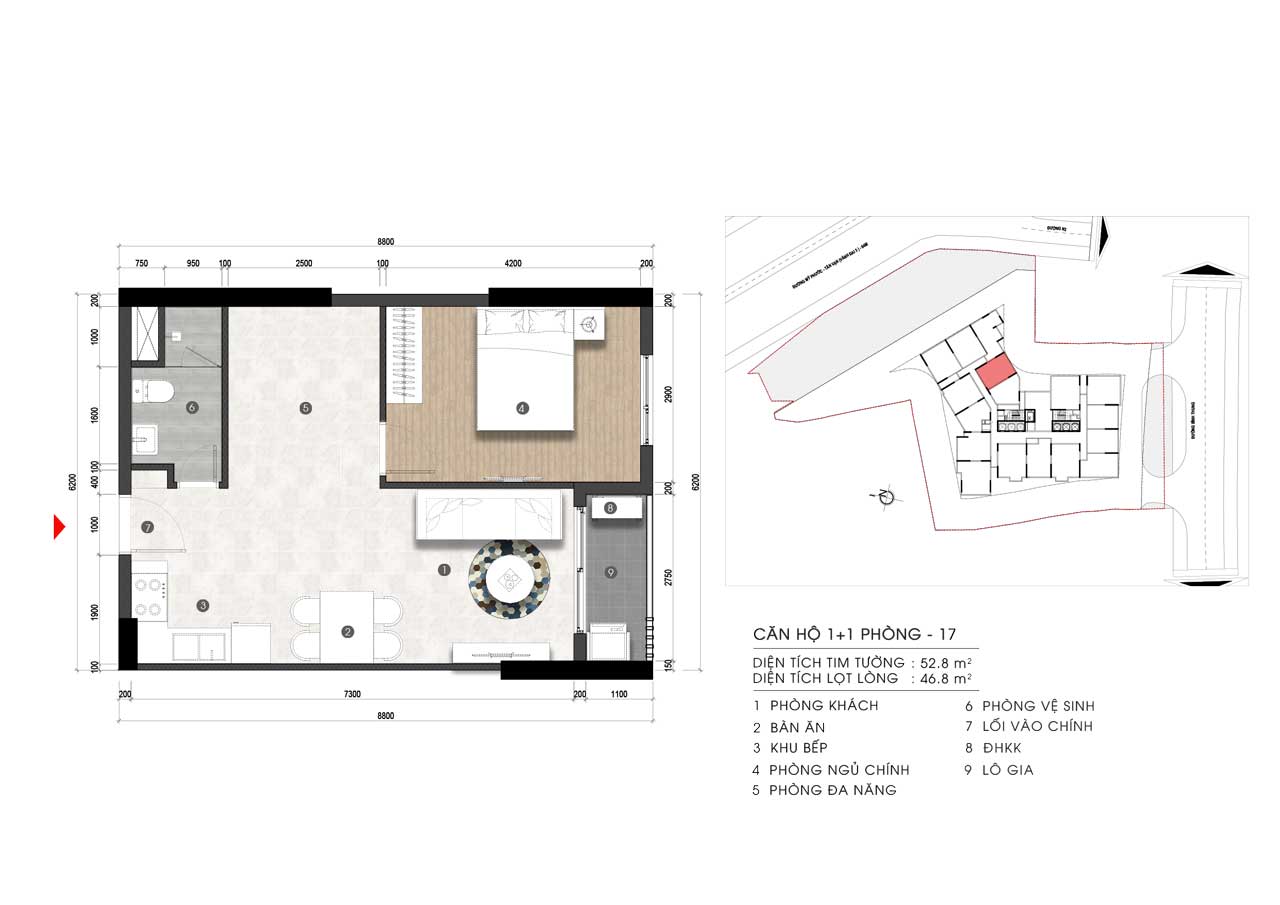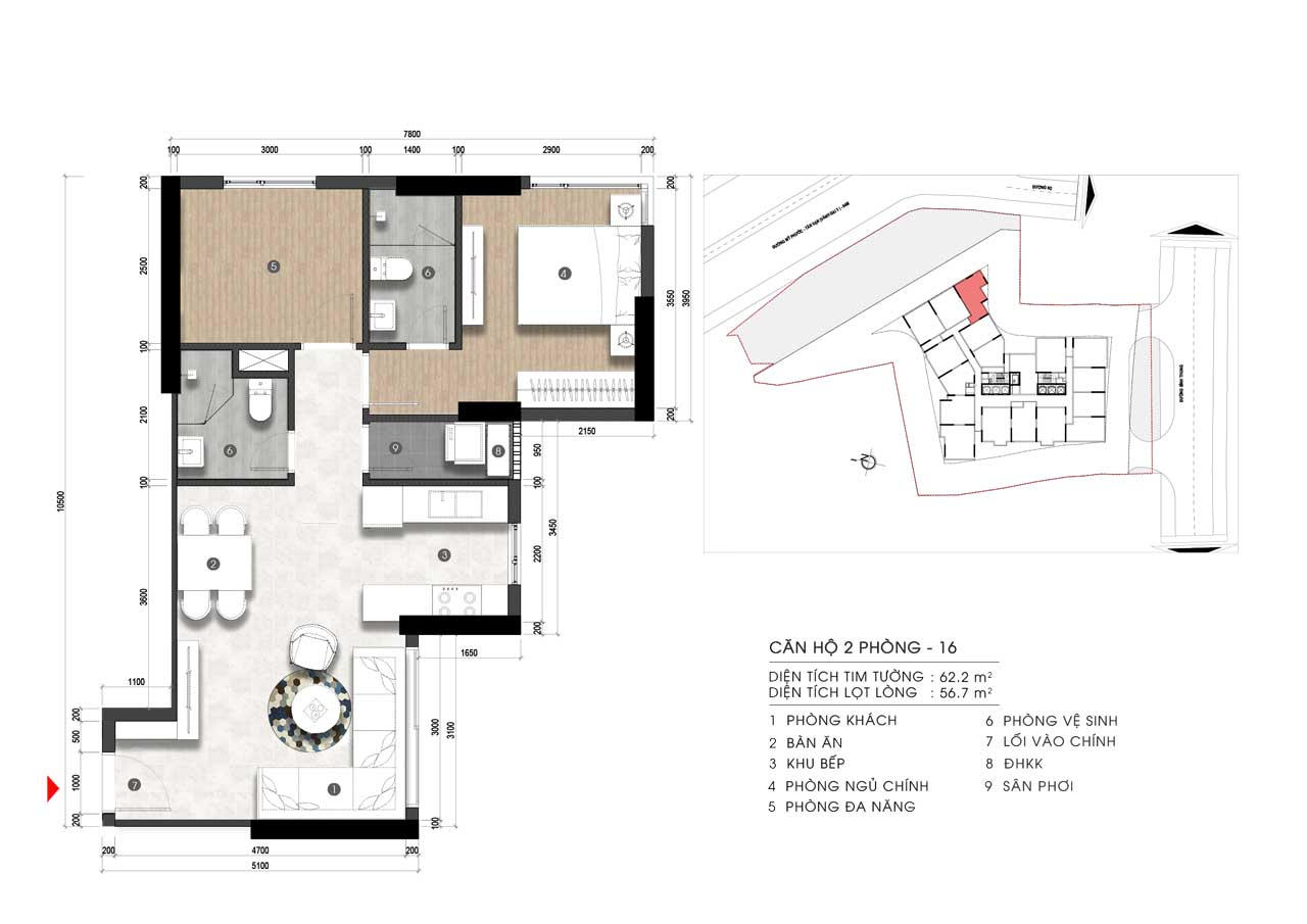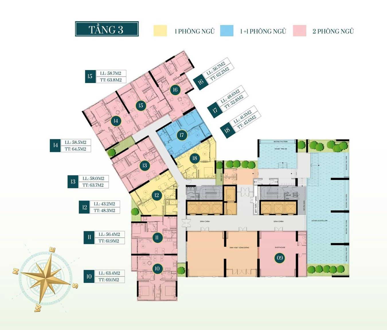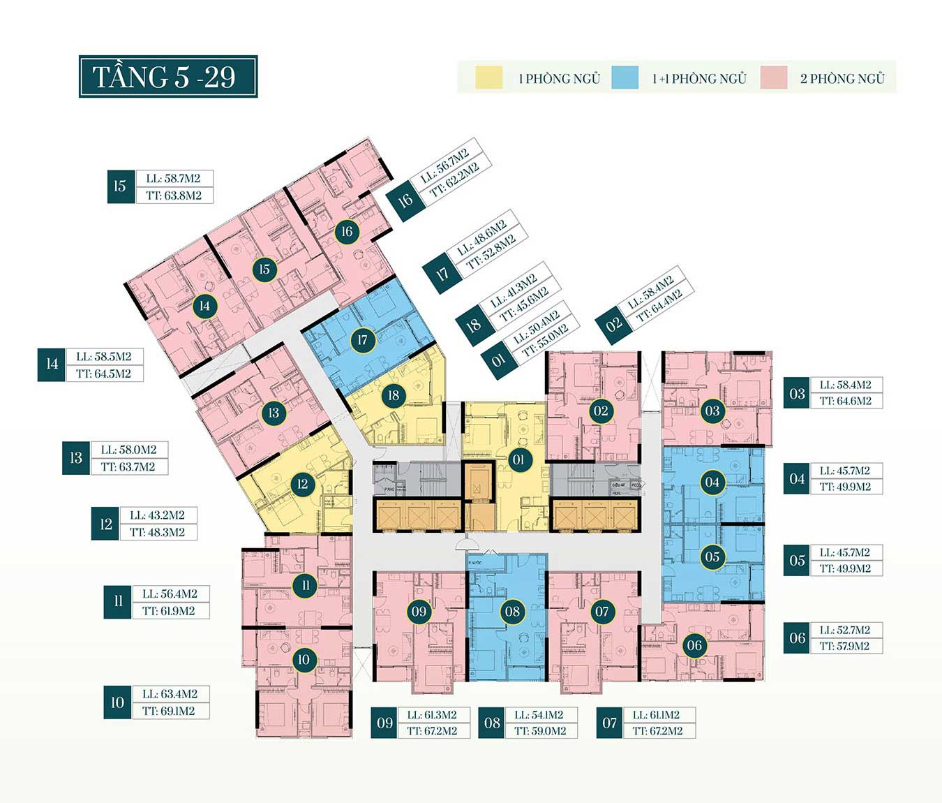 Khối cao 29 tầng với: - Căn hộ ở: 476 căn - Căn shophouse: 8 căn - Diện tích căn hộ: