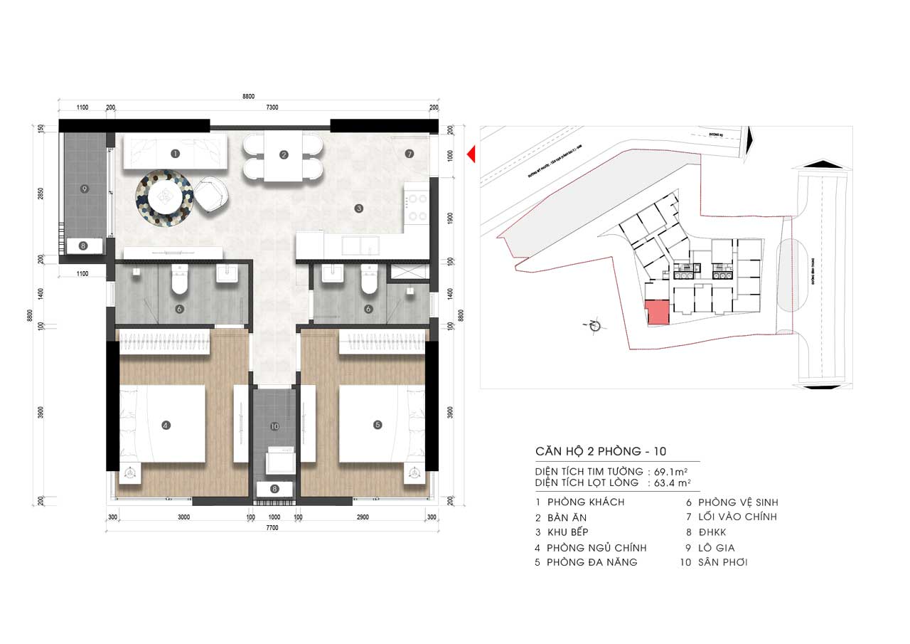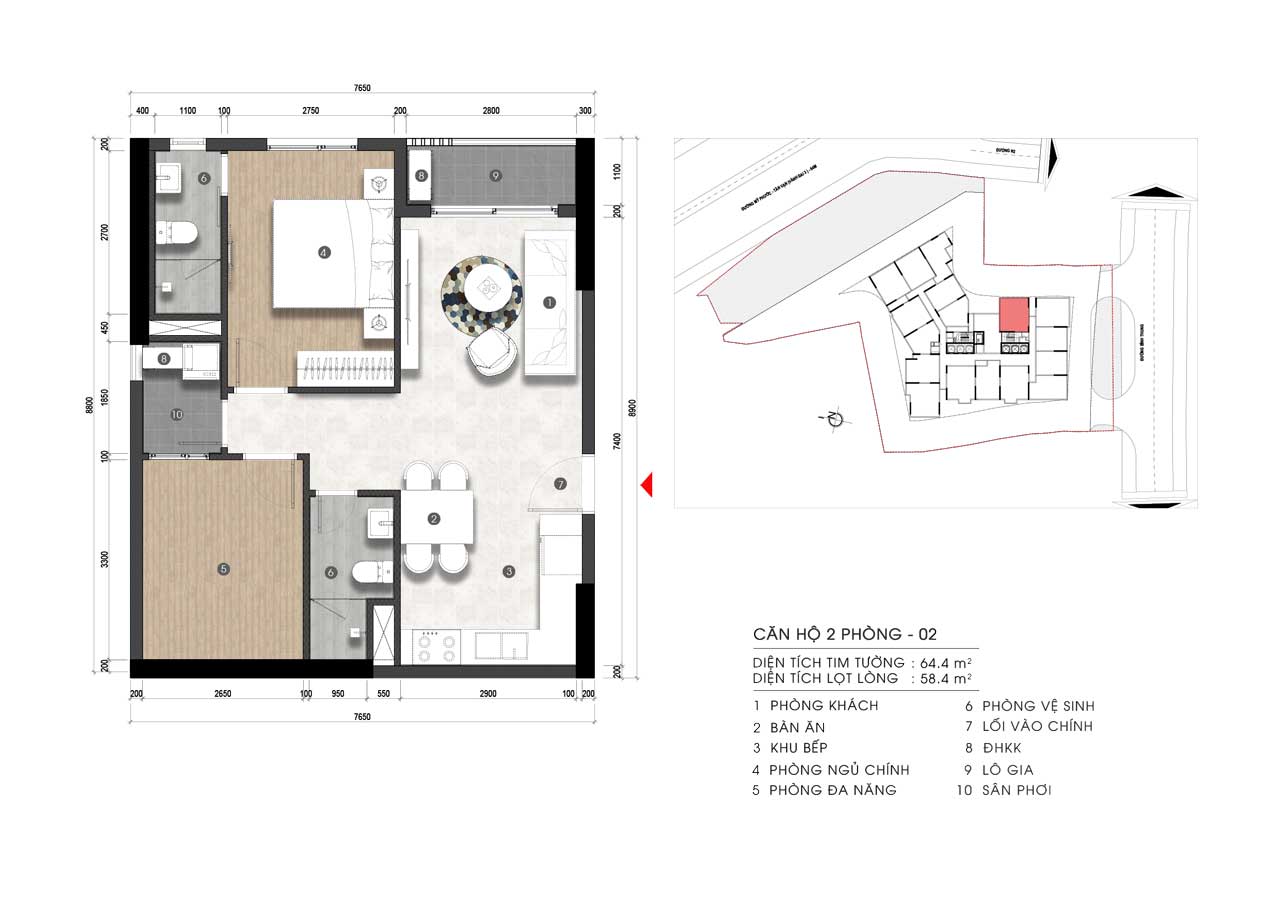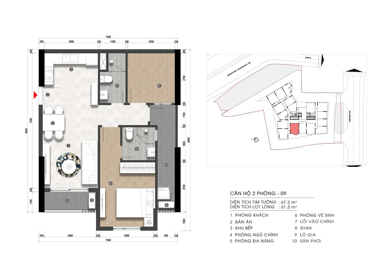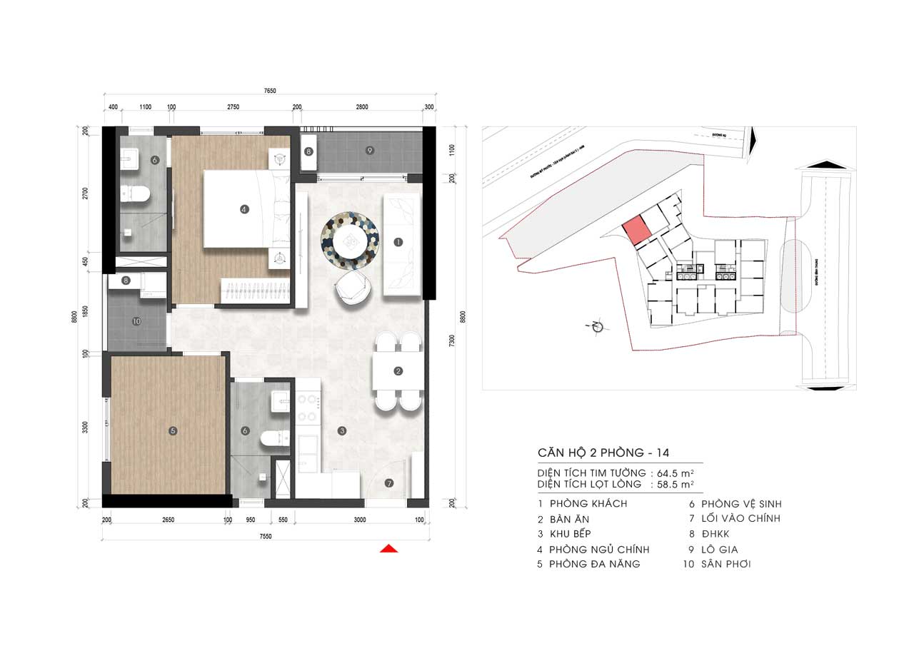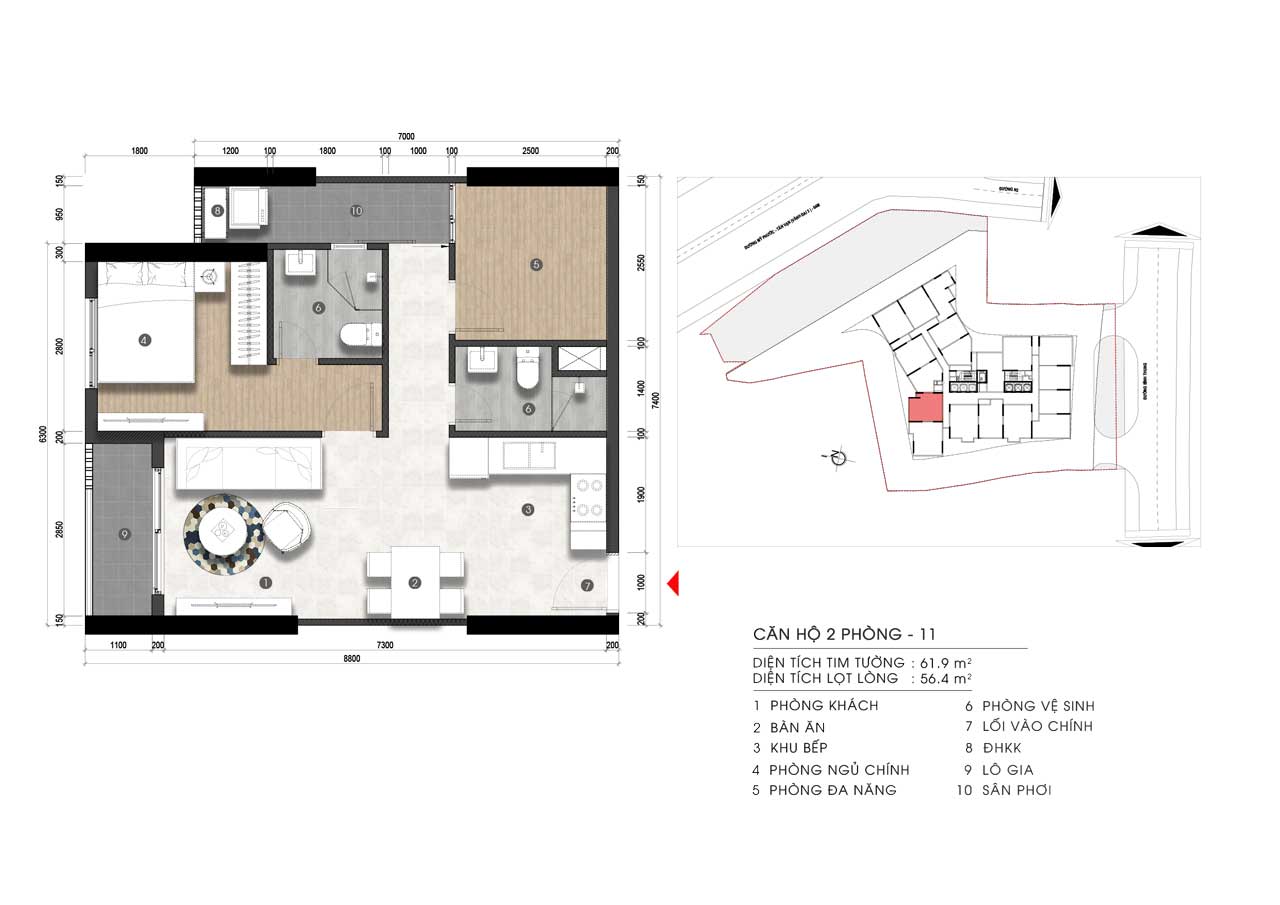 Khối cao 29 tầng với: - Căn hộ ở: 476 căn - Căn shophouse: 8 căn - Diện tích căn hộ: