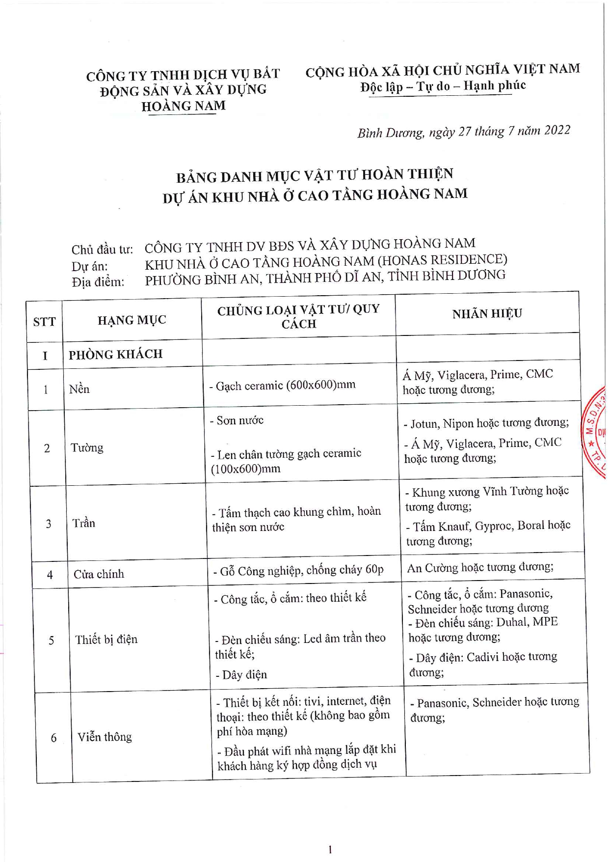 | Chủ đầu tư | Công ty TNHH Dịch Vụ Bất động sản và Xây dựng Hoàng Nam |