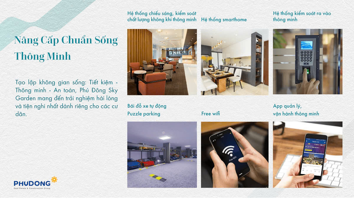 Đặc biệt, nhờ việc tích hợp các giải pháp công nghệ hiện đại vào việc vận hành tòa nhà, Phú Đông Sky Garden hướng đến tối ưu trải nghiệm của người dùng, bắt kịp xu hướng 4.0 hiện đại, mang đến không gian sống Tiết kiệm – Thông minh – An toàn, phù hợp với cộng đồng cư dân trẻ.
